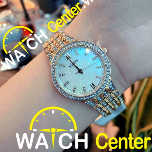 Đồng hồ BULOVA 98l234 bé nhỏ lấp lánh, Với 3viên pha lê Swarovski riêng biệt được gắn chắc chắn trên mặt đồng hồ .